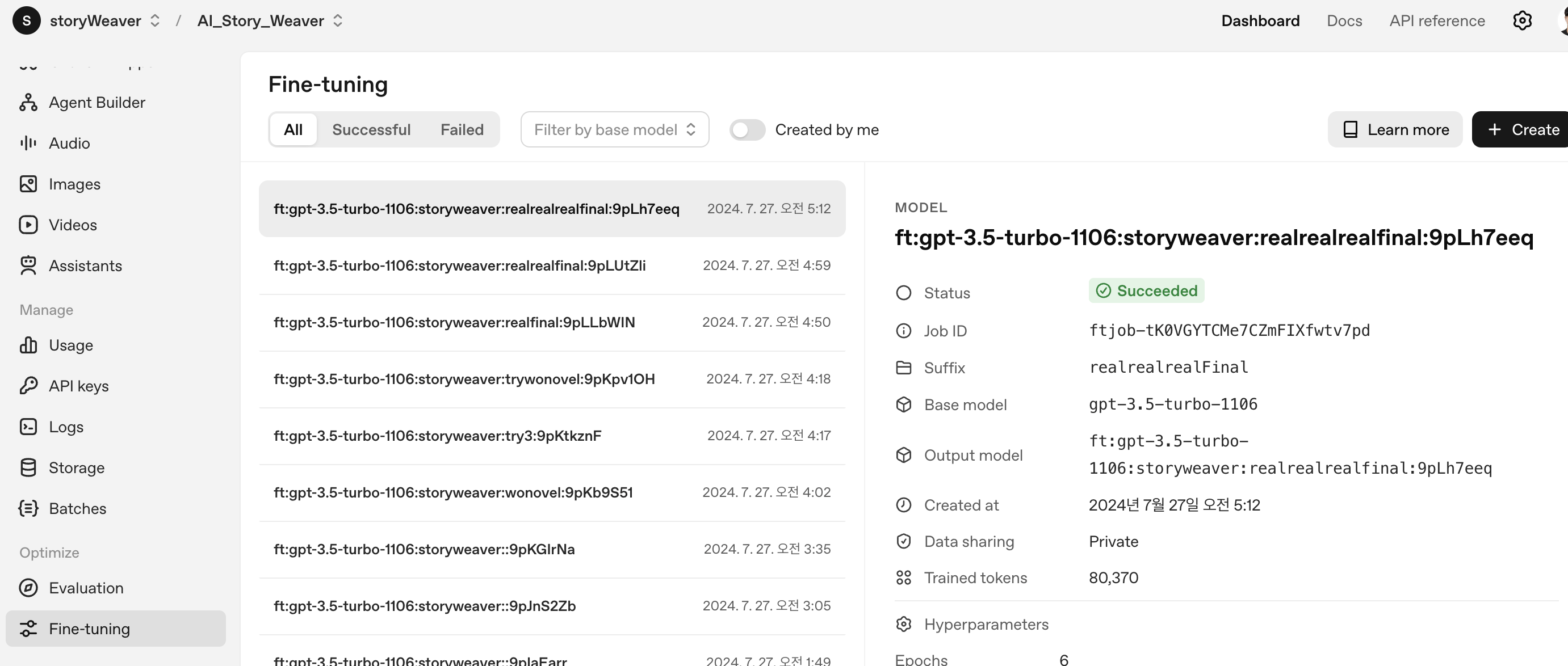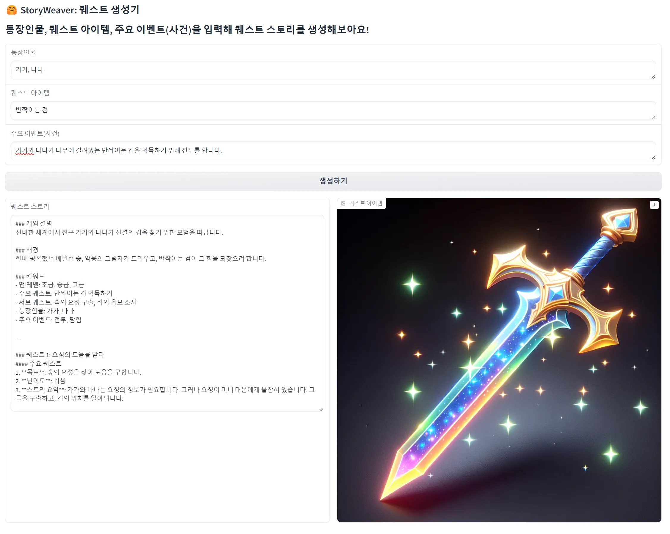 ์ดํ ๋ชจ๋ธ์ ํธ์ถํ์ฌ ์ ์ ์ input๊ณผ ๋๋ถ์ด prompt engineering์ ์ ์ฉํ ๊ฒฐ๊ณผ๋ฅผ ๋ฐํ๋ฐ๊ณ , ๋ฐํ๋ ๊ฒฐ๊ณผ๋ฅผ ๋ฐํ์ผ๋ก ๊ฒ์์ ์คํ ๋ฆฌ, ํ์คํธ, ๋ณด์ ๋ฑ์ ๊ตฌ์ฑํ์์ต๋๋ค. ์๋ ์ฝ๋๋ fine-tuning ๋ชจ๋ธ์ด ์๋ ์ผ๋ฐ gpt-4o-mini๋ฅผ ์ ์ฉํ ์์์ ๋๋ค.